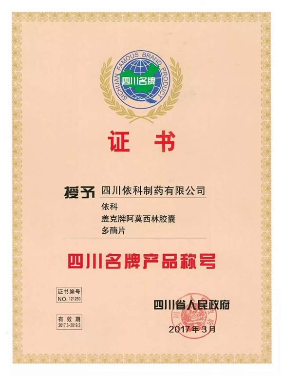 公司高度重视品牌战略,依法注册了“盖克”、“蜀中”、“三星堆”、“阿莫锋”、“益善源”、“蓉通”、“人生就是博”等108件注册商标,1999年“盖克”、2003年“蜀中”、2007年“三星堆”被认定为德阳市知名商标,2001年“盖克”、2004年“蜀中”被认定为四川省著名商标, 2008年“盖克”商标被国家工商行政管理总局认定为“中国驰名商标”。2017年3月,公司盖克牌、人生就是博牌阿莫西林胶囊和多酶片被四川省人民政府授予四川名牌产品称号。2016年,公司实现营业收入66373万元,利税7600万元;2017年,公司实现营业收入75045万元,利税7572万元。公司2017年被命名为德阳市第七批院士专家工作站,2016-2018连续三年被德阳市人民政府确定为重点龙头企业。